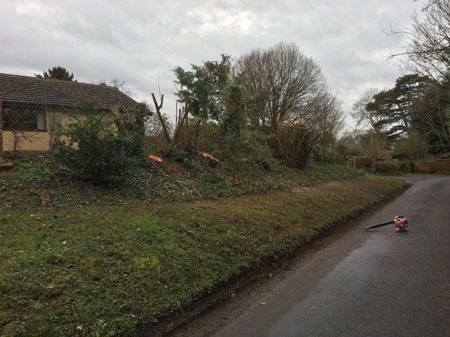 20 years unmaintained.Some recent work we carried out for Little Comberton parish council. Manor Lane had been left unmaintained for over 20 years. As well as some very overgrown Hazel clumps, there were some dangerous and rotten Damsons that were essentially, holding each other up.