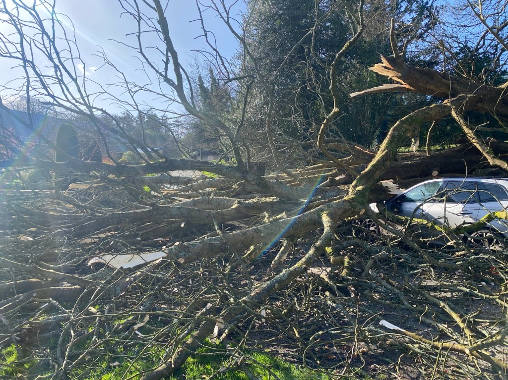 The first task was to free the trapped car from under a very large limb, so it could be safely moved away, and no further damage could be done (although it will almost certainly be a write-off).