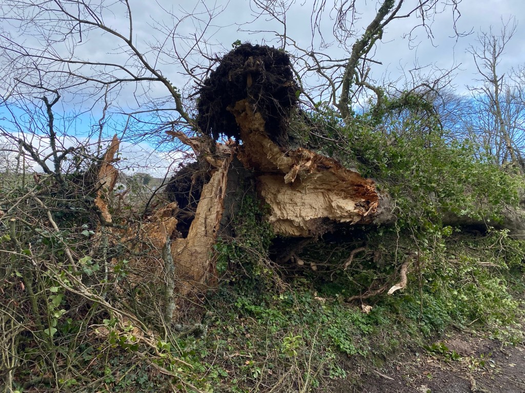 During the worst of storm Eunice a magnificent veteran Beech succumbed to the savage gusts, sending it crashing down onto the bank from which it grew.