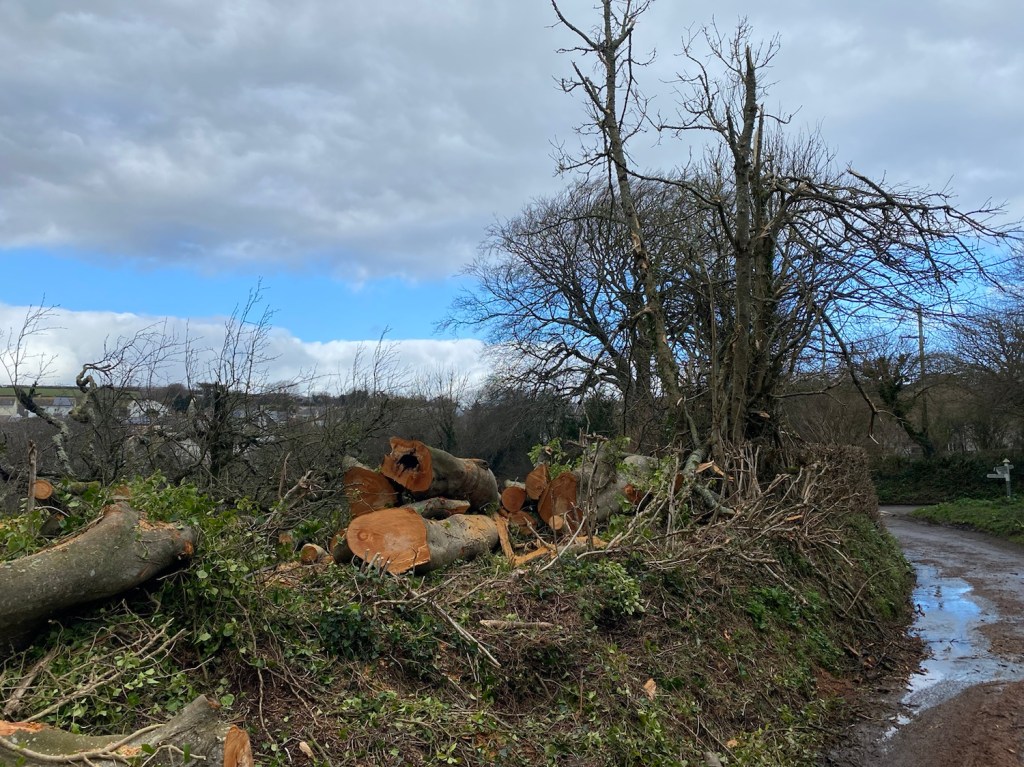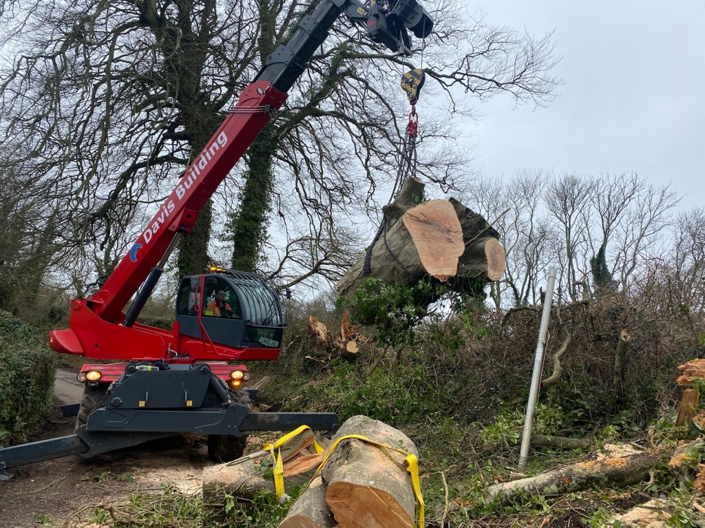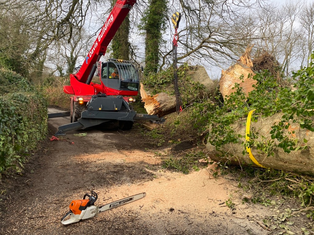 With the trunk shifted to safety and the other hazards made safe, our job was complete, and the lane was reopened. Many thanks to Davis Building (SW) Ltd for providing the rotary tele-handler at less than 12hrs notice, it would have been a very different job, (and considerably longer road closure) without you.